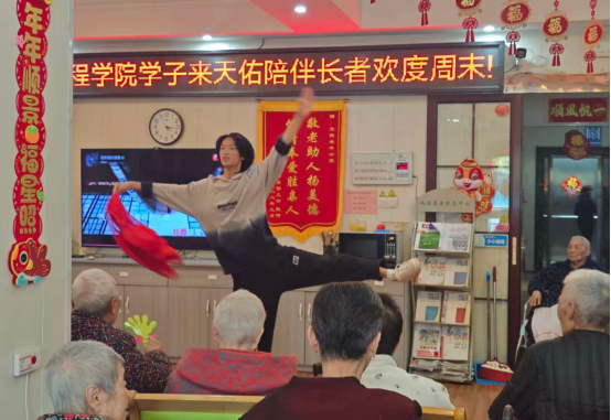 学生志愿者们走进岳塘区天佑老年公寓,开展关爱老人志愿服务活动。通过歌舞表演、知识分享、棋牌互动及清洁服务等丰富形式,与老人们共度了一段充满爱与欢乐的时光。
