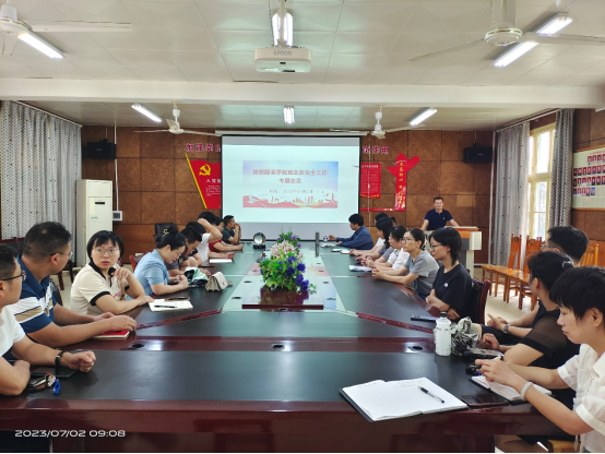 召开安全工作会议,在家院领导和学院班主任老师参加会议,党总支书记李爱国主持会议。