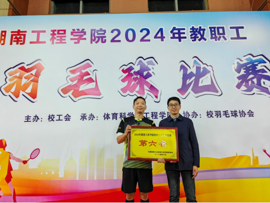 2024年10月21日至24日期间,在我校2024年教职工羽毛球比赛中,我院羽毛球代表队经过六场紧张激烈、扣人心弦的比赛,成功斩获了第六名的优异成绩,这一突破性的成就不仅为学院赢得了荣誉,更在学院体育史上书写了浓墨重彩的一笔。