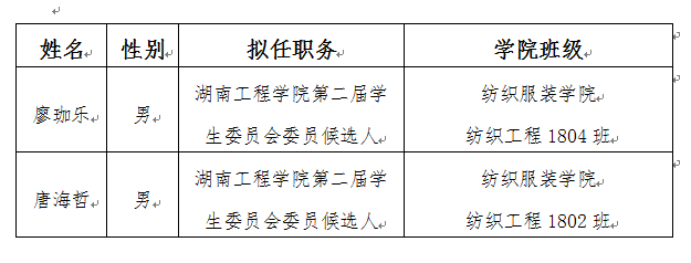 第二次学生代表大会,结合我院实际情况和工作需要,经个人自主申报,学院团总支推荐,学办老师审核,现拟任命廖珈乐、唐海哲等2名同学为成人网站