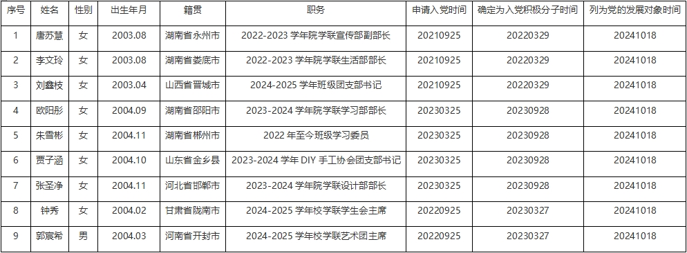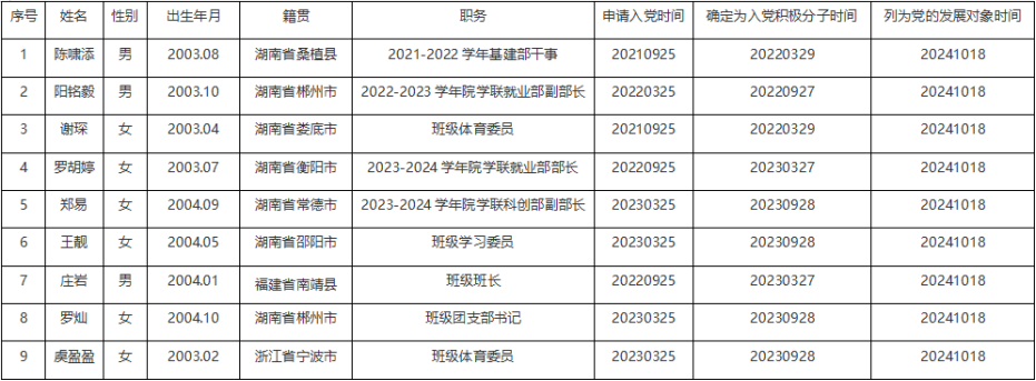 学生第二支部委员会拟接收陈啸添、唐苏慧等18名同志为中共预备党员,现予公示,征求党员、群众和单位的意见。公示期限内,个人和单位均可通过来信、来电、来访等形式,向党支部、学院基层党委或校党委组织部举报反映公示对象在德、能、勤、绩、廉等方面的情况和问题。以个人名义举报反映的应署本人真实姓名和联系方式;以单位名义举报反映的应加盖单位印章。举报反映公示对象的情况和问题必须真实准确,内容尽量具体详细,并尽可能提供有关调查线索。受理单位对举报反映人的情况严格保密。