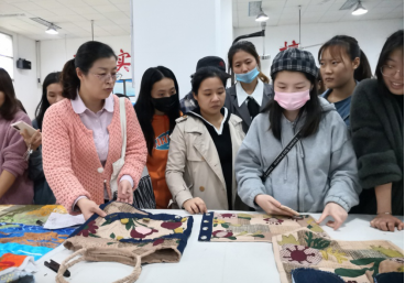 学生小组作品类别跨度广泛,展现形式多种多样,评阅内容包括作品效果图、作品实物等。在集体评阅中,学生办公室教师则根据高校思政、美育等方面集合作品进行了探讨,挑选出更展现当代大学生风貌的作品,各位专业教师则围绕着作品的创意灵感、配色造型能力及工艺手法对作品进行了分析与讨论,对于典型性的问题进行手把手专业指导与演示。经教师集体评阅活动后,最终评选出13组优秀作品,参加“唯金杯拼布大赛”与“湖南省第六届大学生艺术展演活动”两个赛事。