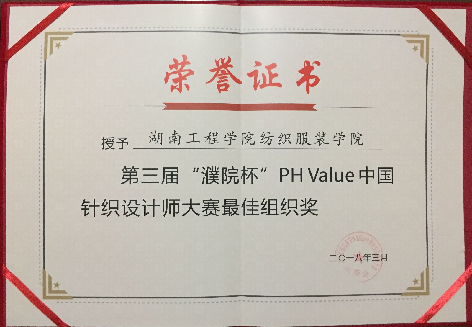2018年3月15日,由中国纺织工业联合会、中国针织工业协会、中国国际贸易促进委员会纺织行业分会、中国服装设计师协会及桐乡市濮院羊毛衫市场管委会共同主办的第三届“濮院杯”PH Value中国针织设计师大赛决赛暨颁奖典礼在上海国际会展中心成功举办。