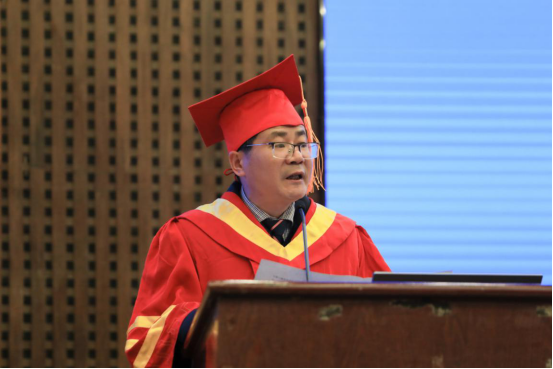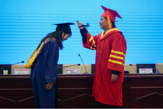 校长易兵为获得硕士学位的研究生拨穗
