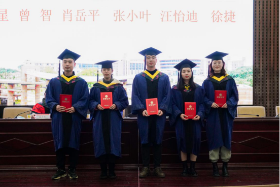 李小华宣读了2020届研究生校长奖和优秀硕士学位论文的表彰文件。卢张宇、姚月杰、吴波获2020届研究生校长奖,肖星、曾智、肖岳平、张小叶、汪怡迪、徐捷等人撰写的论文被评为2020届优秀硕士学位论文。会上,校领导为获奖者颁发证书。