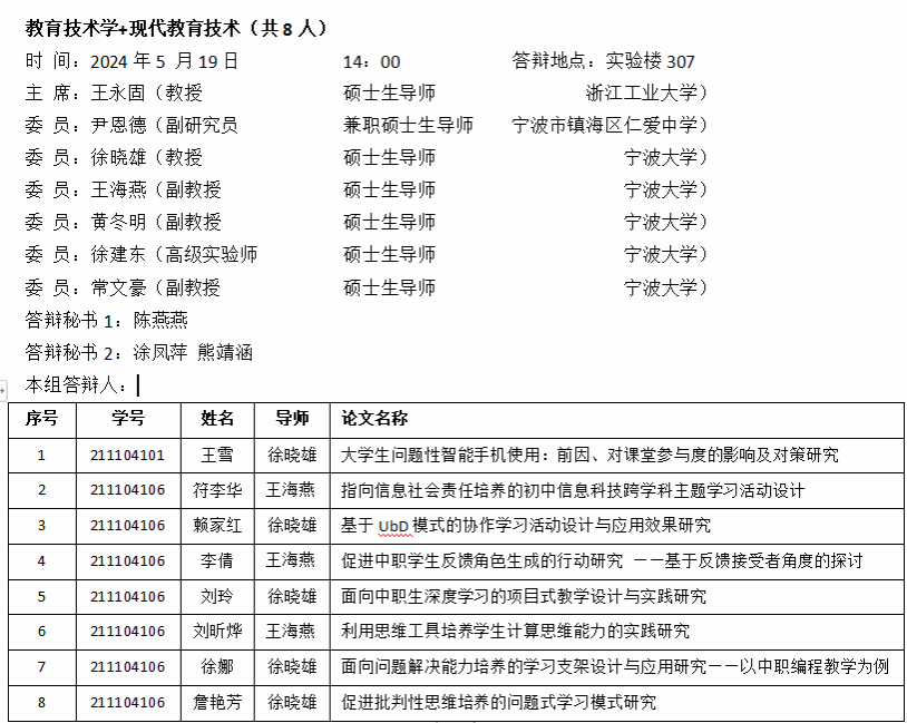 教师成人网站2024届硕士学位论文答辩公告(教育技术)