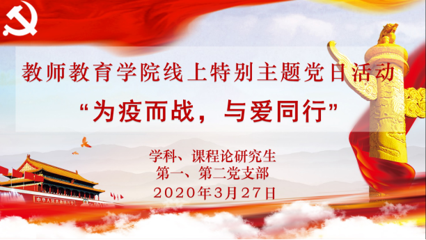 3月底,教师成人网站学科、课程论研究生第一、第二党支部61位同学在线召开“为疫而战,与爱同行”主题党日活动。