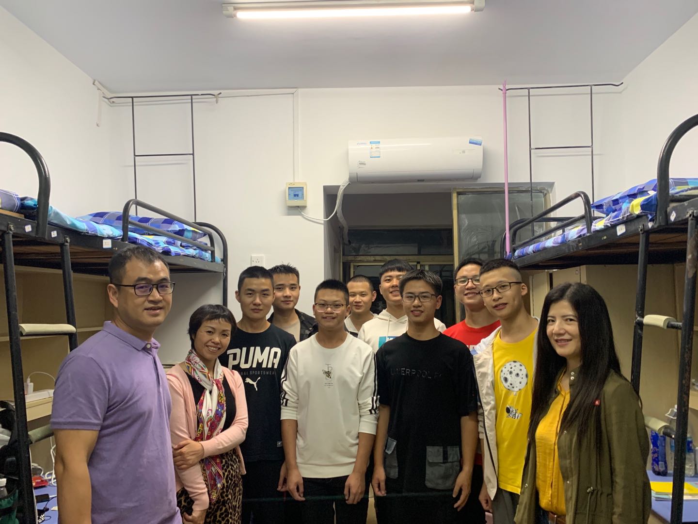 由于疫情的原因,我校采取家长不入校的措施,为关心新同学,2020年9月26日,我院党总支书记李爱国、副院长周衡书、副院陈晓玲、党总支副书记罗荃、副院长何斌以及学办老师来到宿舍关心同学的生活以及报道情况。