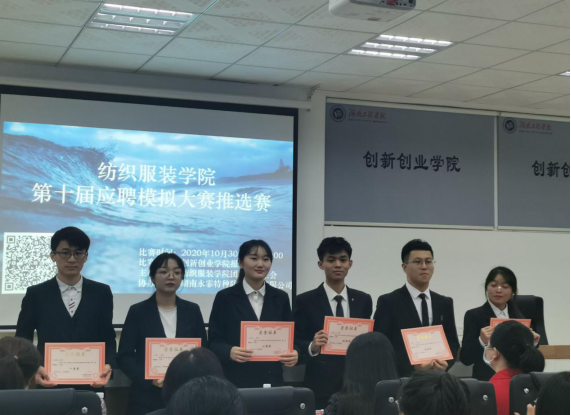 应聘模拟大赛,通过情景模拟,无领导讨论这两环节,最终袁辉翔获得一等奖,进入校级决赛,刘蒙丹二等奖,姜雪茹三等奖,张毅然,谢文玲,李康康优胜奖
