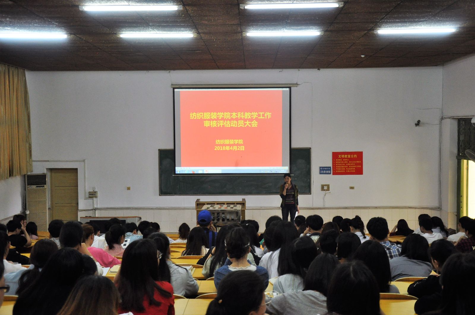 在电教101、105进行本科教学工作审核评估动员大会。学院党总支副书记黄自力、学办主任唐星星以及学办老师黄镜燕、章平都出席会议,我院全体15、16、17级分年级分专业在不同时间、地点参加。