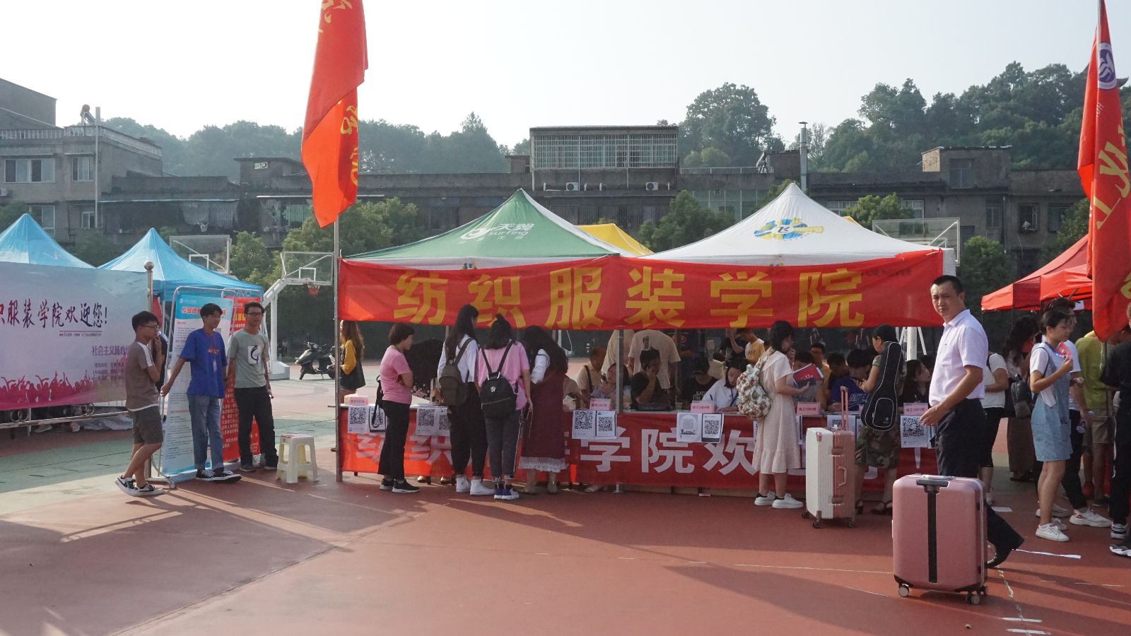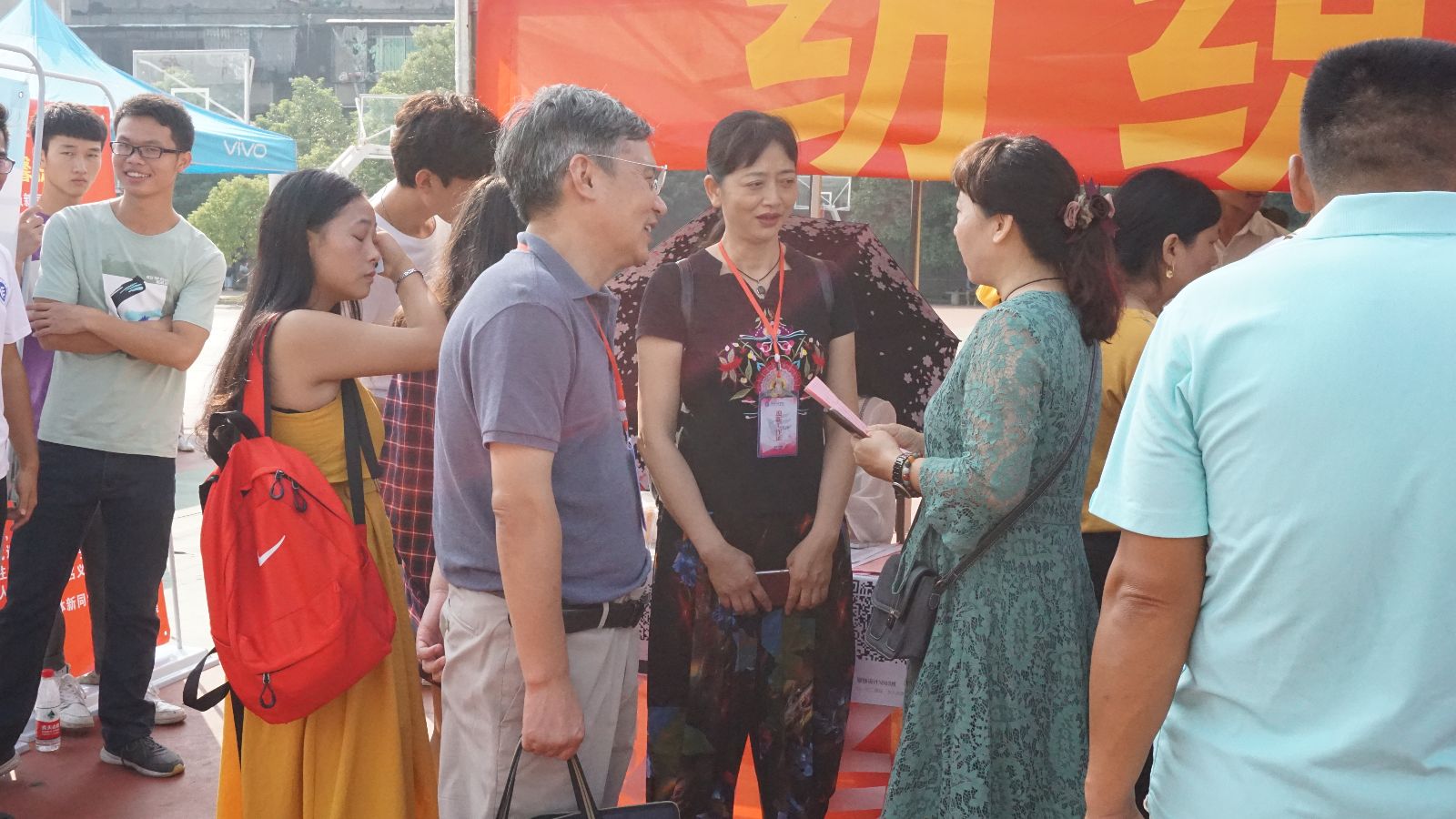 为切实做到让家长放心,让学生安心,在迎新现场,学院党支部书记江灝、副书记黄自力、学办辅导员、新生班主任分批到达报名接待点,集体督阵指挥,并在接待点前,与家长亲切交流,讲解 成人网站概况
