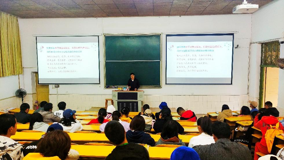 最后,对有心理问题的大学生初步疏导的问题进行了细致入微的讲解。我们的工作是“润物细无声”的,有着重要的意义,不能轻易忽视;各班寝室长和心理委员要认真负责,不能有消极态度,要关注同学们的心理问题。