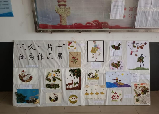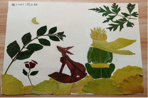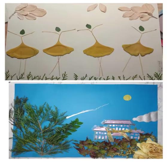 “风吹一片叶”树叶拼贴画活动中,参与同学们通过拾集各式各样,色彩各异的树叶,对树叶进行裁剪、修改、拼贴,最后拼贴成各式各样精美的图案。一幅幅美丽的作品,令人眼前一亮,也表达出同学们内心的情感。一张中国地图表达着对祖国的热爱,一幅山水画描绘出自然的美好,一张秋日美景是对生活的赞美,一张舞者图表达对青春的礼赞。