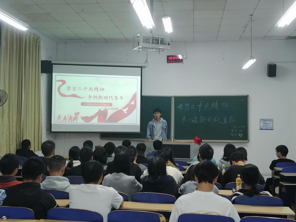 于2023年10月20日晚,组织2023级同学于红楼集中开展了“学习二十大精神,争做新时代青年”主题班会。