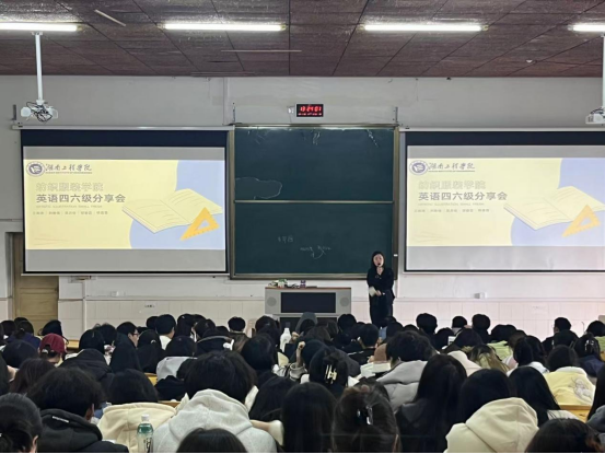 辅导员袁微微主持,邀请学院英语四六级取得高分的同学带来经验分享,学院近两百名学生参加。