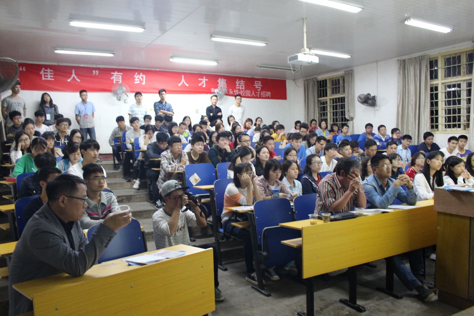 为了给2017届毕业生们提供更好的就业机会,也为了让企业能够获得更多优质的应聘者,10月10日晚7点,东莞德永佳纺织制衣有限公司在电教101教室进行东莞德永佳2017届校园招聘。参加此次招聘会的有德永佳集团人力资源部总经理陈接照、副经理杨云文、助理何集泽、张巧茹以及2017届毕业生们。