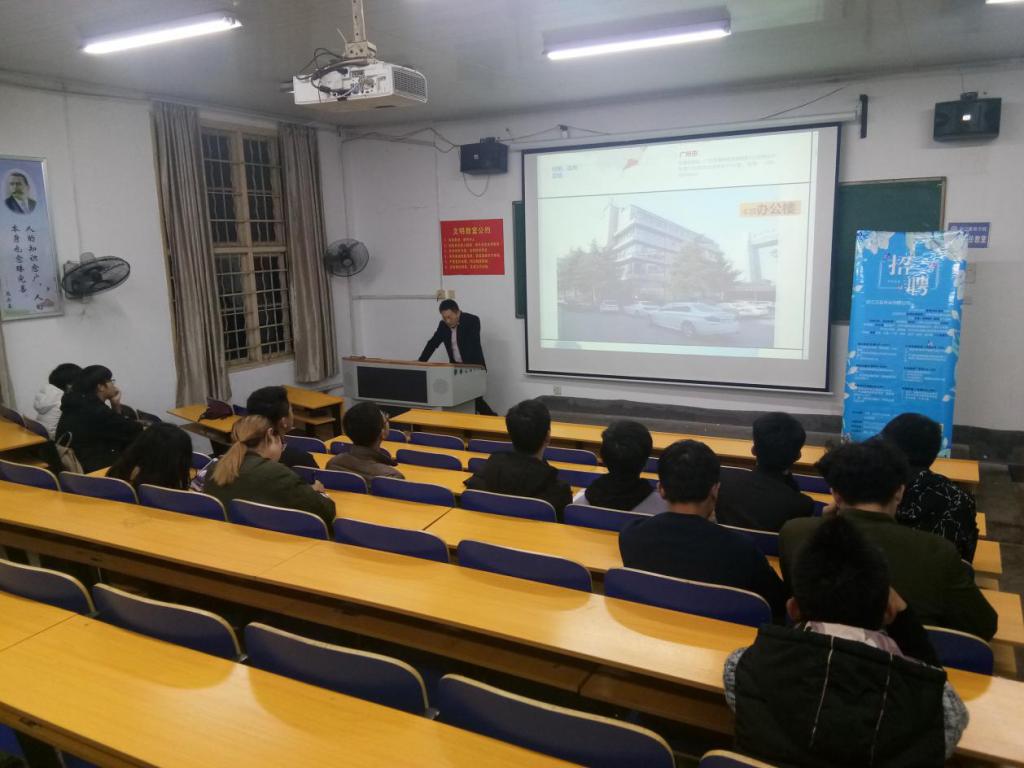 2018年11月14日晚7:00,浙江万姿布业有限公司在电教101召开招聘宣讲大会,参与此次会议的有浙江万姿布业有限公司招聘负责人、我院应届毕业生。