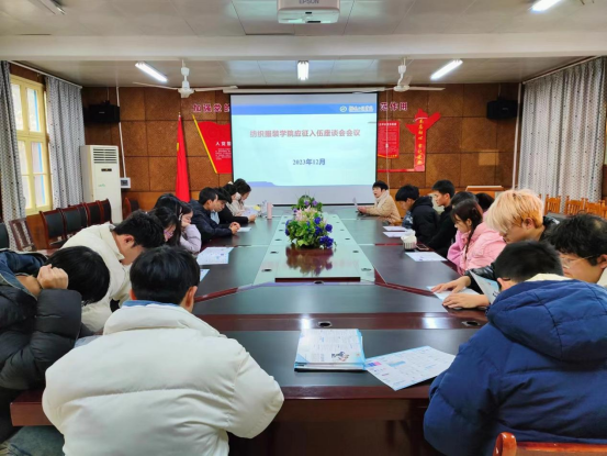 为进一步加强对大学生的思想政治引领,践行社会主义核心价值观,扎实推动2024年春季征兵工作,促进国防建设,成人网站 于12月19日上午在电教楼201举行应征入伍学生座谈会,会议由成人网站 学办主任张利芝主持,辅导员龚旭昱、退役复学学生纺织工程2001班葛志豪和全院有意向参军的同学参加。