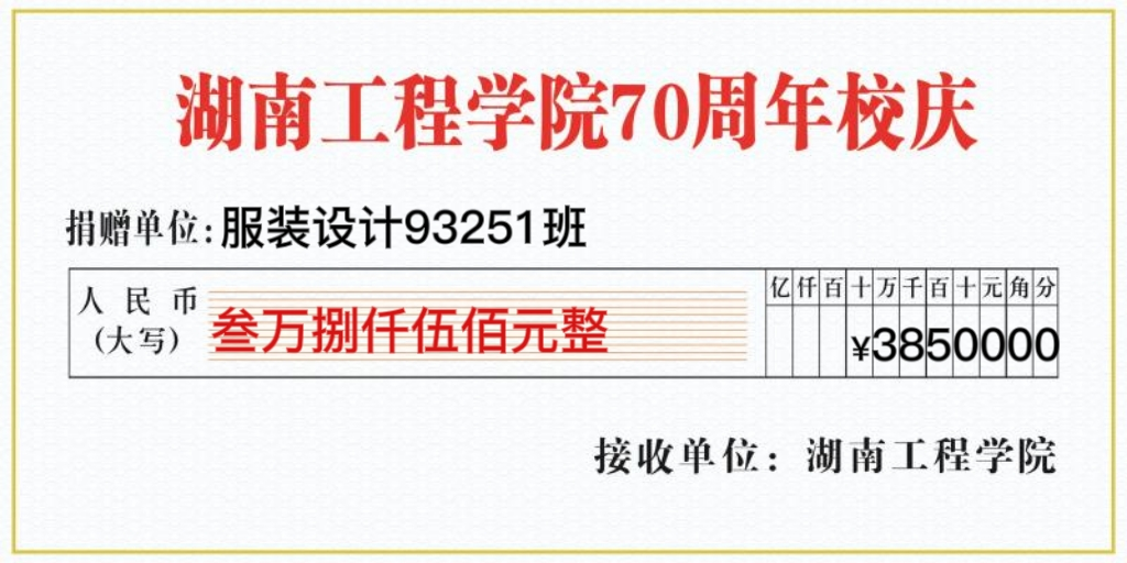七十年的春风化雨我们一路坚定初心,七十年的春华秋实我们一路守护初心,这一路走来,我们不忘的是校友们的全心全意,不变的是教师们的呕心沥血,不改的是湖工学子们的孜孜不倦。值此母校的七十华诞,服装设计93251班向母校捐赠38500元,助力成人网站
