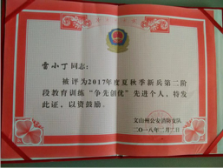 时光飞逝,一转眼两年的时间早已过去军旅生涯虽然是短暂的,但它强健了雷小丁的体魄、培养和锻炼了他不怕苦、永不言败的精神和品质,磨练了他的遗志,也让他深刻理解军人的使命和肩负的责任。虽然现在离开了部队,但是他对于部队和军人的热爱去丝毫不减当初,如今的他已经回到学校和我们一起学习,他将用一颗向上的心一直保持努力。正是因为有了他们这样无私奉献的人,不计得失的人才会给了我们平静、美好的生活。