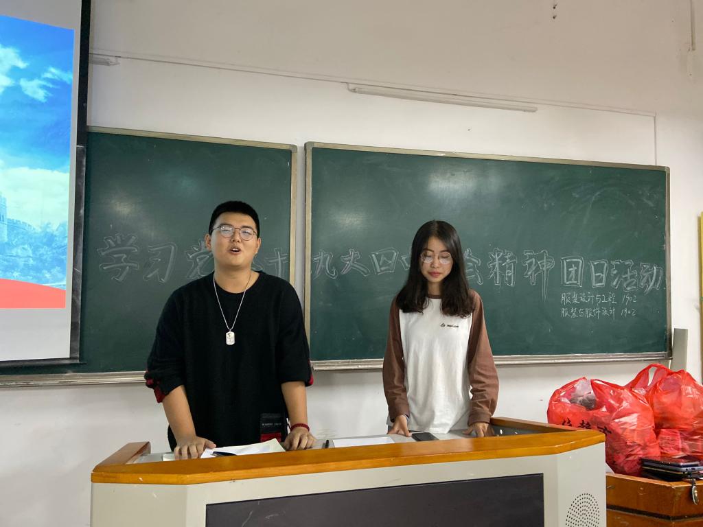 教职工党员及2018、2019级全体学生在红楼二楼举行“学习党的十九大四中全会精神”党、团日活动。此次活动目的是让老师同学们更加了解中国发展现状,体会中国发展速度之迅速,带领纺织服装院学生学习党的十九大四中全会精神,