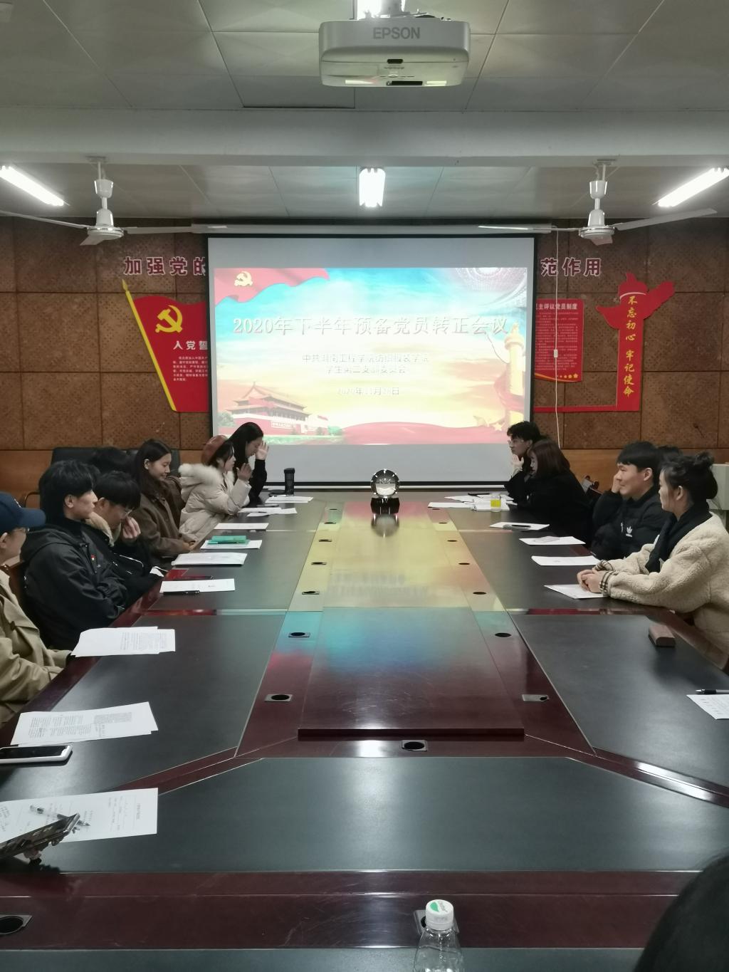 学生第二党支部全体学生党员和预备党员,会议由支部书记傅静琳老师主持,对张娜、孙鹏等10名预备党员发展为中共正式党员进行讨论和表决。