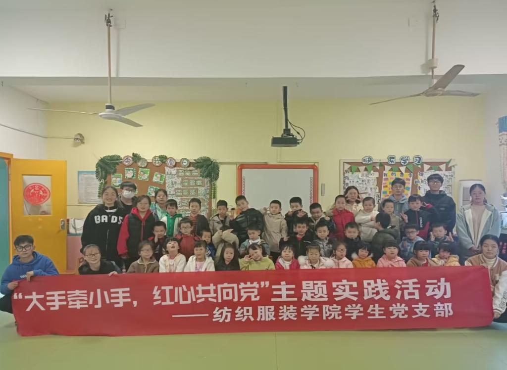 学生第一党支部全体党员组织前往花地幼稚园与小朋友一同开展“大手牵小手,红心共向党”主题实践活动。