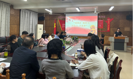 教工党支部在电教楼201会议室开展10月“一月一课一片一实践”主题党日活动。活动围绕“迎国庆 强担当 同奋斗 共筑梦”主题进行学习研讨,本次活动由教工党支部组织委员牛子璇主持,支部全体党员参加。