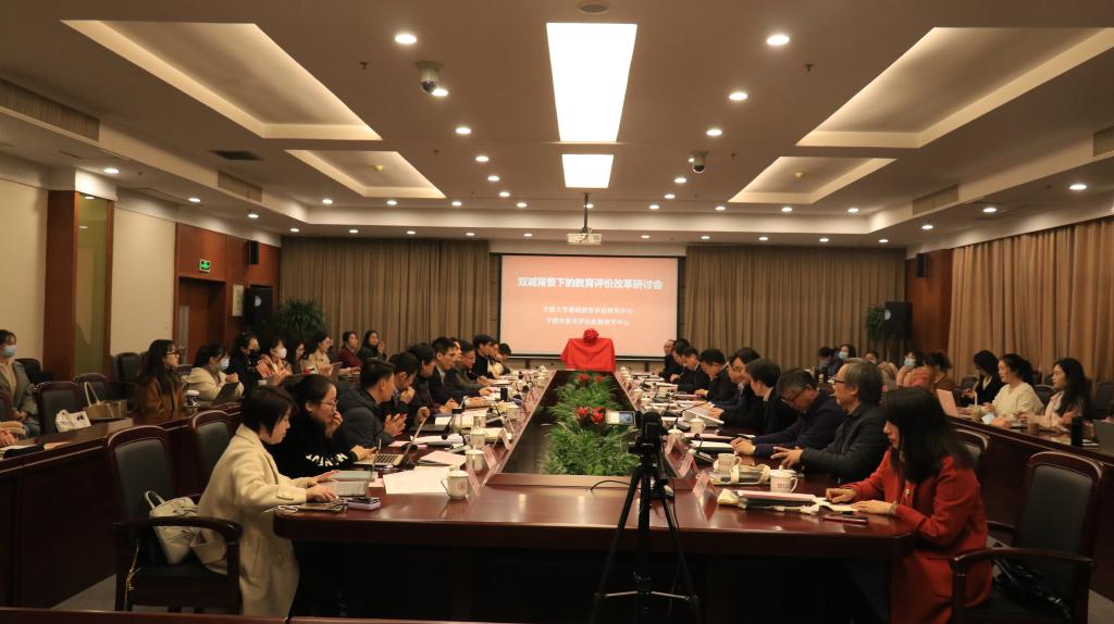 会议分两个阶段进行,第一阶段是宁波大学基础教育评估研究中心揭牌仪式与专家报告,第二阶段是“双减”背景下的教育评价改革专题研讨。第一阶段会议由陈柏华教授主持,方莹芬书记代表教师成人网站致欢迎词,张宝歌处长宣读研究中心成立文件,张建国副局长和徐军伟部长为研究中心揭牌,华东师范大学课程与教学研究所所长崔允漷教授、张建国副局长分别做专家报告。