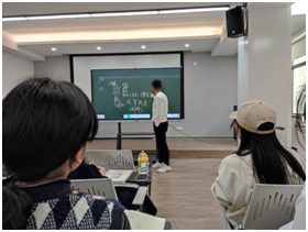 报告于下午14:00开始。首先宋洪波博士由《易经》中的“情怀”的角度出发,提出了“天人合一”的整体思想,从而引发大家思考高手与一般人的区别。提出了高手之所以成功是基于整体看全部,而一般人错把局部当整体。因此,我们不能单单地把自己看成是春雨书院的你,研究生的你,宁波大学学生的你,而是一个整体的你,是浑然于天地的你,这正是突出《易经》中“天人合一”的整体思想。当面对这样的传统文化,宋洪波博士以自身实践例子印证深度理解传统文化可用以四个字概括,即“书须成诵”。