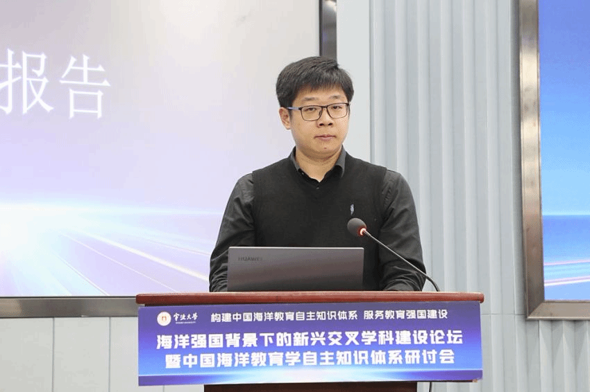 图:上海海洋大学档案馆(校史馆、博物馆)馆长,海洋文化研究中心副主任宁波副研究员作《交叉融合:海洋高校学科建设的本质与特色》主旨报告