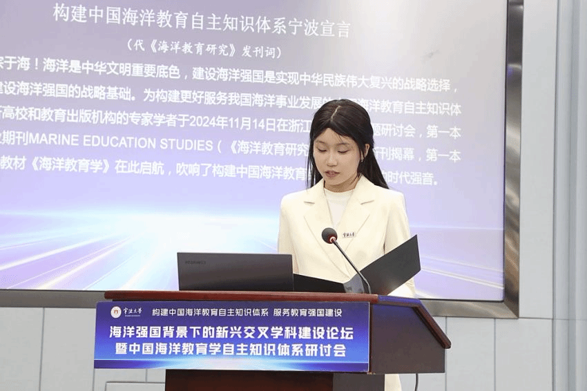 发布会第三阶段,发布《构建中国海洋教育自主知识体系宁波宣言》。