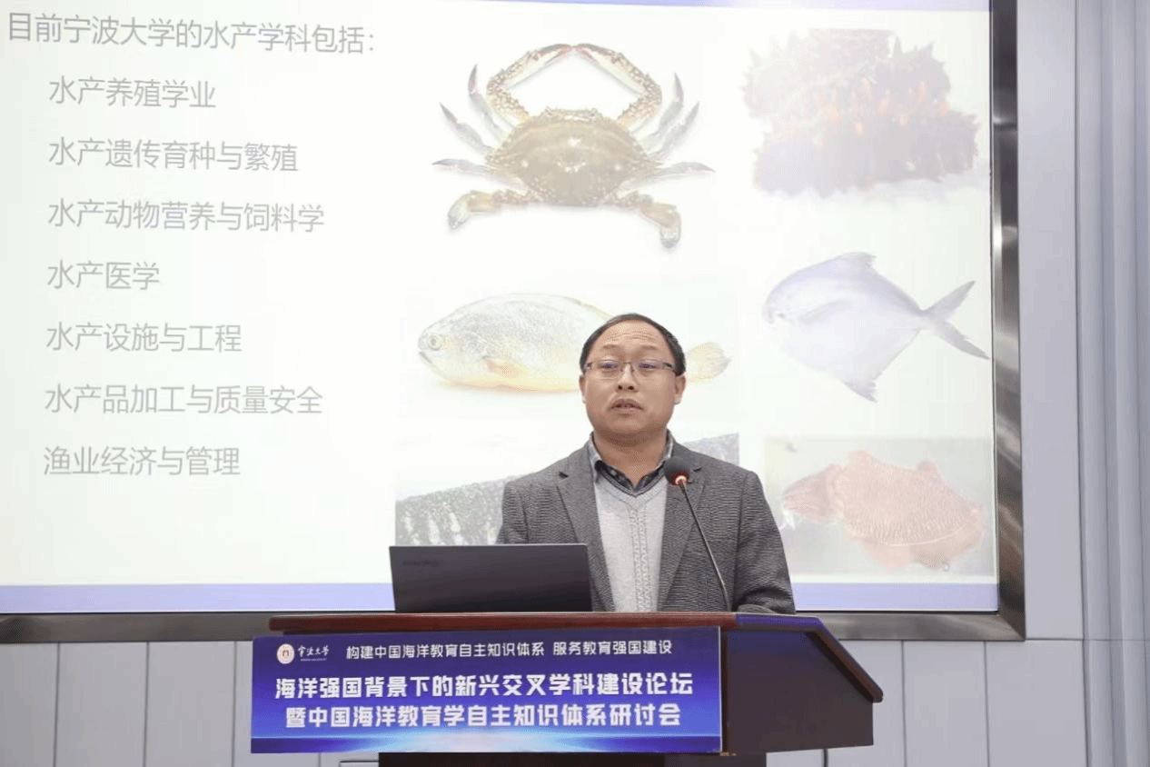 图:宁波大学海洋学院副院长母昌考教授作《以水产为核心的学科交叉建设》主旨报告