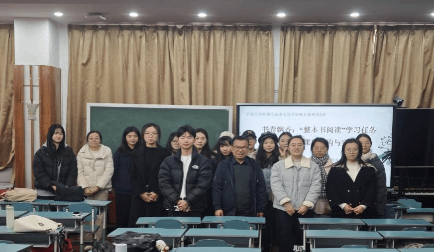 冯铁山教授及其研究生团队走进宁波大学附属宁波市实验学校,与初中语文组开展本学期第二次“联合教研”活动。主要环节有:课堂教学观摩、授课老师分享备课心得、基地学校教师教研点评、冯教授专题讲座。
