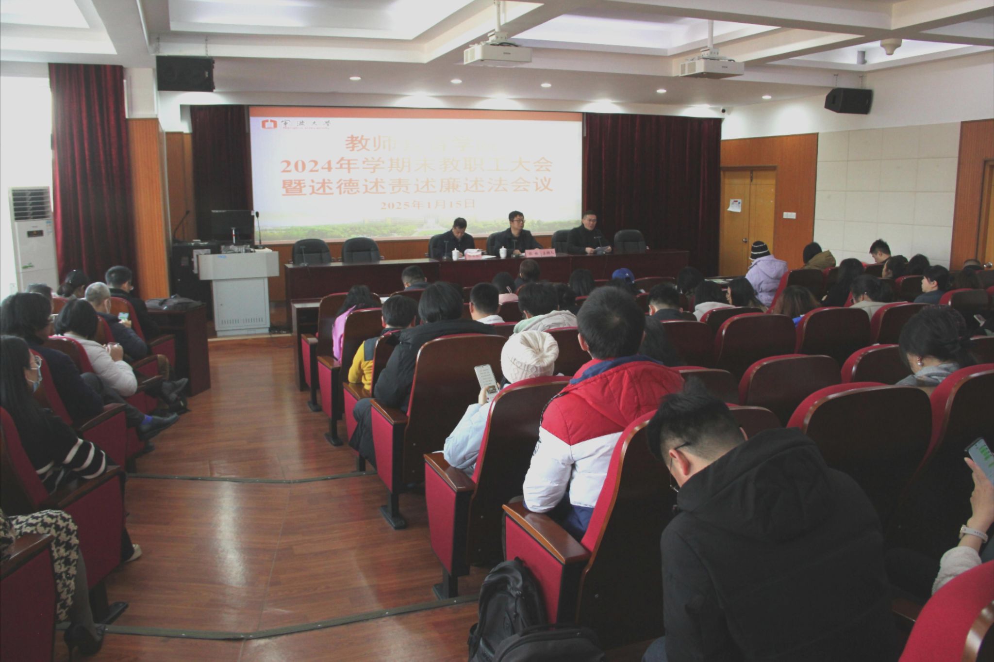 1月15日,教师成人网站2024年学期末教职工大会暨述德述责述廉述法会议在教育楼211会议室举行。会议由院党委书记张林主持,院党政班子成员及全体教职工参会。