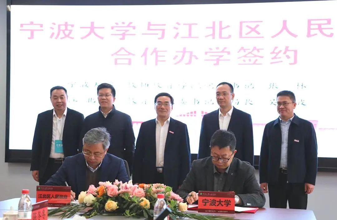 宁波市教育局、江北区相关负责人,宁波大学党(校)办、党委宣传部、教师成人网站、材料科学与化学工程学院、信息科学与工程学院等相关负责人参加签约仪式。