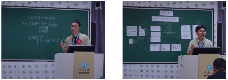 比赛现场,选手们各展所长,结合学科特点创新教学设计。中学语文组深入解析经典文本,数学组巧妙设计生活化案例,小学教育组生动演绎互动课堂。评审团由校内外专家组成,从教学内容、教学方法、课堂表现等多维度进行综合评价。竞赛全程紧张有序,选手们沉着应对模拟课堂、即兴问答等环节,充分体现了宁波大学师范生培养的成效。