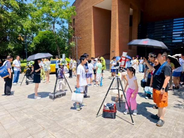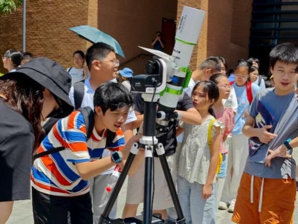 硬核的理论学习之后,新奇的实践探索接踵而至。在海曙外国语学校的顾勤华、宁波市第三中学宋欢欢,宁波天文协会仇晖等三位老师的带领下,同学们使用最新型的专业望远镜观测了太阳黑子和日珥,直观感受太阳外部大气层的奇妙现象。大家分组轮流观察,认真记录,在实践中加深了对天文知识的理解。