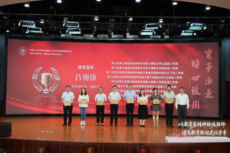 校领导为我院获得第六届长三角师范院校教师智慧教学大赛理工组三等奖的戴洪珠老师(右四)颁奖