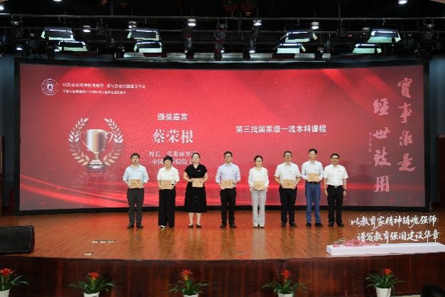 校领导为我院获批第三批国家级一流本科课程的周国平老师(右三)颁奖