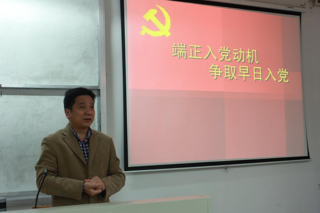 2014年4月2日下午17:00,我院在西校区实验楼113阶梯教室举行了第十二届入党积极分子培训班第二讲——端正入党动机,本次培训课由分党校校长王存宽老师授课。