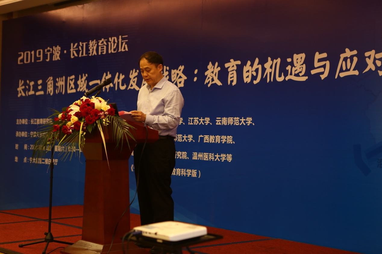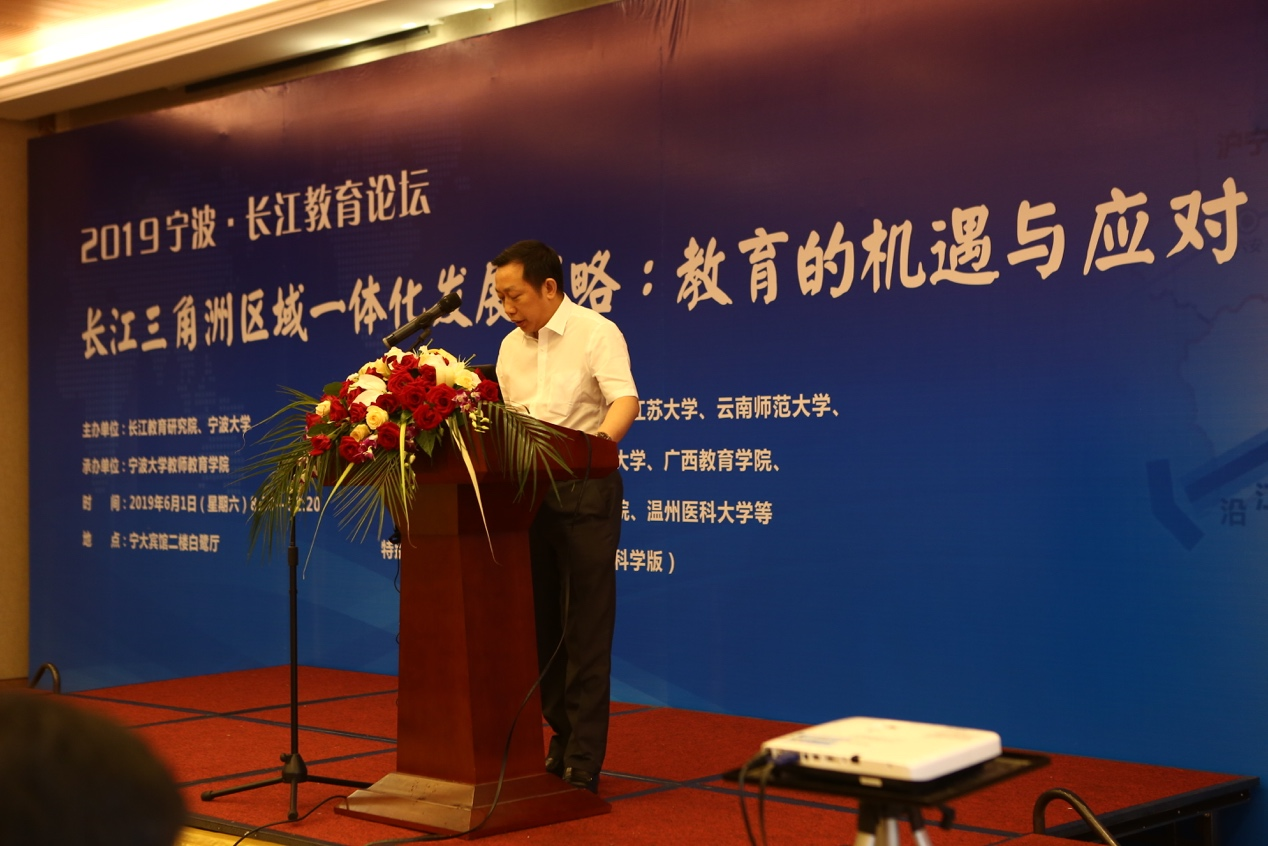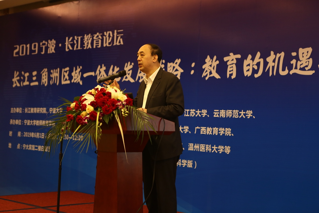 为了深入贯彻落实党的十九大精神及全国教育大会精神,学习5月13日中共中央政治局会议关于审议《长江三角洲区域一体化发展规划纲要》的会议内容和教育部《长江教育创新带规划》文件精神,体现教育高端智库职能,服务国家重大发展战略,6月1日上午,以“长江三角洲区域一体化发展战略:教育的机遇与应对”为主题的2019宁波·长江教育论坛在宁波大学举行,来自教育部、中国教育学会、中国教育技术学会、北京师范大学、华中师范大学、宁波大学等部门和高校科研机构的50多位国内有关政府机构负责人、高校学者、知名教育智库专家,围绕长江教育创新带、区域教育一体化等专题进行探讨交流,提出相关建议,为加快实现国家长三角一体化发展的战略目标贡献智慧。