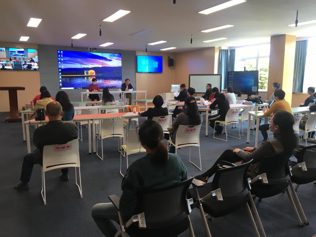4月29日下午,教师成人网站召开疫情防控期间第一次全体教职工大会。会议以分会场视频转播的形式进行,学院精心进行了会前安排,一个主会场和两个分会场分别贴上名牌,座位绑线隔开。学院党委书记方莹芬主持会议。