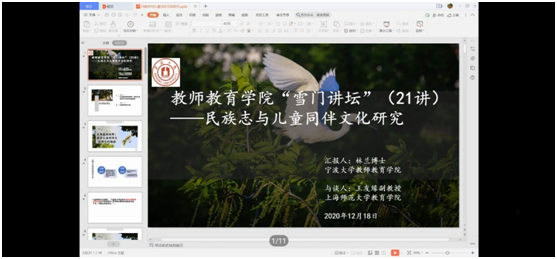 教师成人网站“雪门讲坛”第二十一次学术报告会于2020年12月18日下午在腾讯会议课堂成功开展,南京师范大学学前教育博士、现为成人网站-成人网站成人免费直播