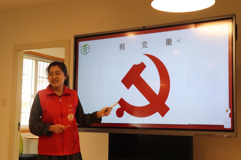 “中国共产党的党徽是由一把镰刀和锤子组成,镰刀代表农民,锤子代表工人,工人和农民联合起来才有了中国共产党”,小朋友们从了解党徽构成到亲手绘制党徽,再到最终完成剪纸作品,通过助教老师不断的科普与讲解,同学们在学习剪纸的同时,也了解了中国共产党的历史,内心埋下了红色的种子。