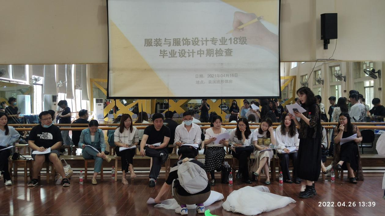 4月26日下午13:00,服装专业教研室的全体老师在电教形体房对2022届服装与服饰设计专业的毕业设计成衣效果进行统一检查,根据《2022届毕业设计任务书》的要求,全面熟悉本届毕业设计的成衣展示效果,解决毕业设计中存在的问题,切实做好今年的毕业设计作品动态展的工作。这次检查的内容包括毕业设计效果图、款式图、成衣实物、配件以及制作过程证明材料等等,参加毕业设计人数共计98人,实际到现场人数65人,最终检查毕业设计效果图、款式图共计98款,成衣实物127套,因为疫情原因无法返校参加中期检查工作的毕业生,毕设作品由同寝室或同设计组的同学,以及毕设指导教师代为展示。
