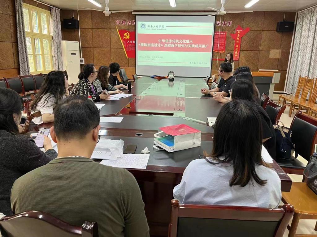 会议室201召开中华优秀传统文化融入《服饰图案设计》课程教学改革与实践课程思政改革成果推广专题报告会。