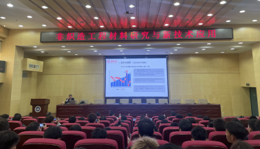 座谈会结束后,靳向煜教授在图书馆第二报告厅开展了题为《非织造工程材料研究与新技术应用》的学术讲座,学院领导、青年教师、纺织工程、非织造材料与工程专业本科生和纺织工程领域研究生参加。讲座主要分为非织造材料现状与背景、干法非织造材料及新技术、纺熔法非织造材料及新技术、湿法非织造材料及新技术和非织造材料与工程专业建设等内容,详细阐述了我国当代非织造产业概况、非织造专用原料、非织造成网与加固关键技术以及相关代表性工程化成果,提出了非织造知识型、创新型工程人才的培养方向。