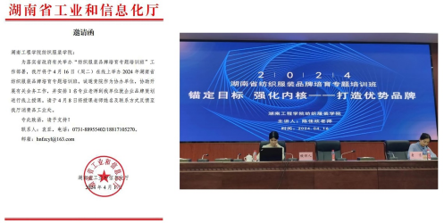 为落实省政府有关举办“纺织服装品牌培育专题培训班”工作部署,提升湖湘纺织服装品牌价值,推动湖南省纺织服装行业提质增效,2024年4月16日,湖南省工业和信息化厅主办的“湖南省纺织服装品牌培育专题培训班”成功举办,我院受邀作为协办单位全程参与筹备工作,并选派陈佳欣老师进行专题讲课,来自全省112家重点纺织服装企业的代表以及各级工信部门的相关负责人,共计176人参与了本次培训。