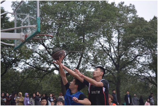 篮球队的同学们在凛冽的寒风中飞奔,凛冽的天气丝毫挡不住成员们的热情。哨声一响,各方队员围成一圈大喊加油,双方队迅速进入状态。赛场上,双方队员激情高涨,你争我夺,展开一轮轮进攻、投球、防守,动作帅气利落。队员们出色的配合以及迅速的回防,给场上制造了紧张刺激的气氛。同时场下啦啦队更是热情高涨,呐喊助威,气氛十分活跃,比赛甚是精彩。团队协作的精神场内、场外随处可见,“友谊第一,比赛第二”的宗旨展露无遗。最后,比赛以61:62的比分圆满结束。